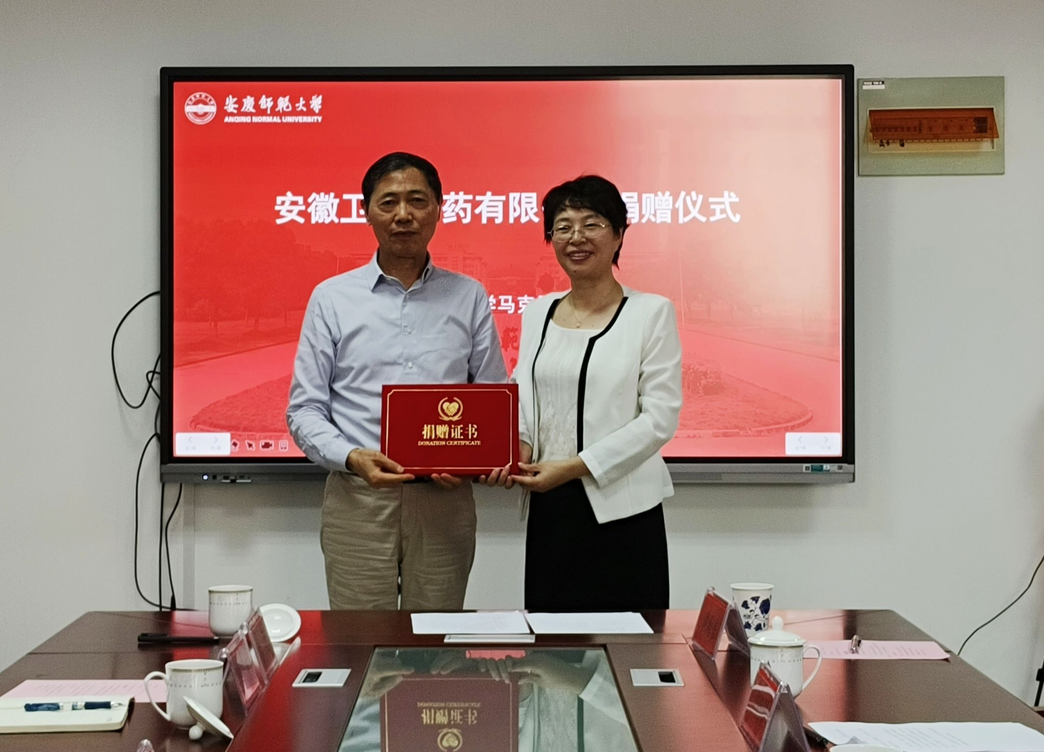 10月18日,由海南卫康制药(潜山)有限公司在我校“延乔班”设立的“卫康延乔英才奖学金”捐赠仪式在我校举行。校长彭凤莲、1984级校友、海南卫康制药(潜山)有限公司董事长韩定旺出席仪式,中共安庆市委党史和地方志研究室负责人、校友办负责人、365上市公司党政领导班子成员、学院校友分会工作人员、“延乔班”辅导员和学生代表20余人参加了捐赠仪式。会议由365上市公司院长严仍昱主持。