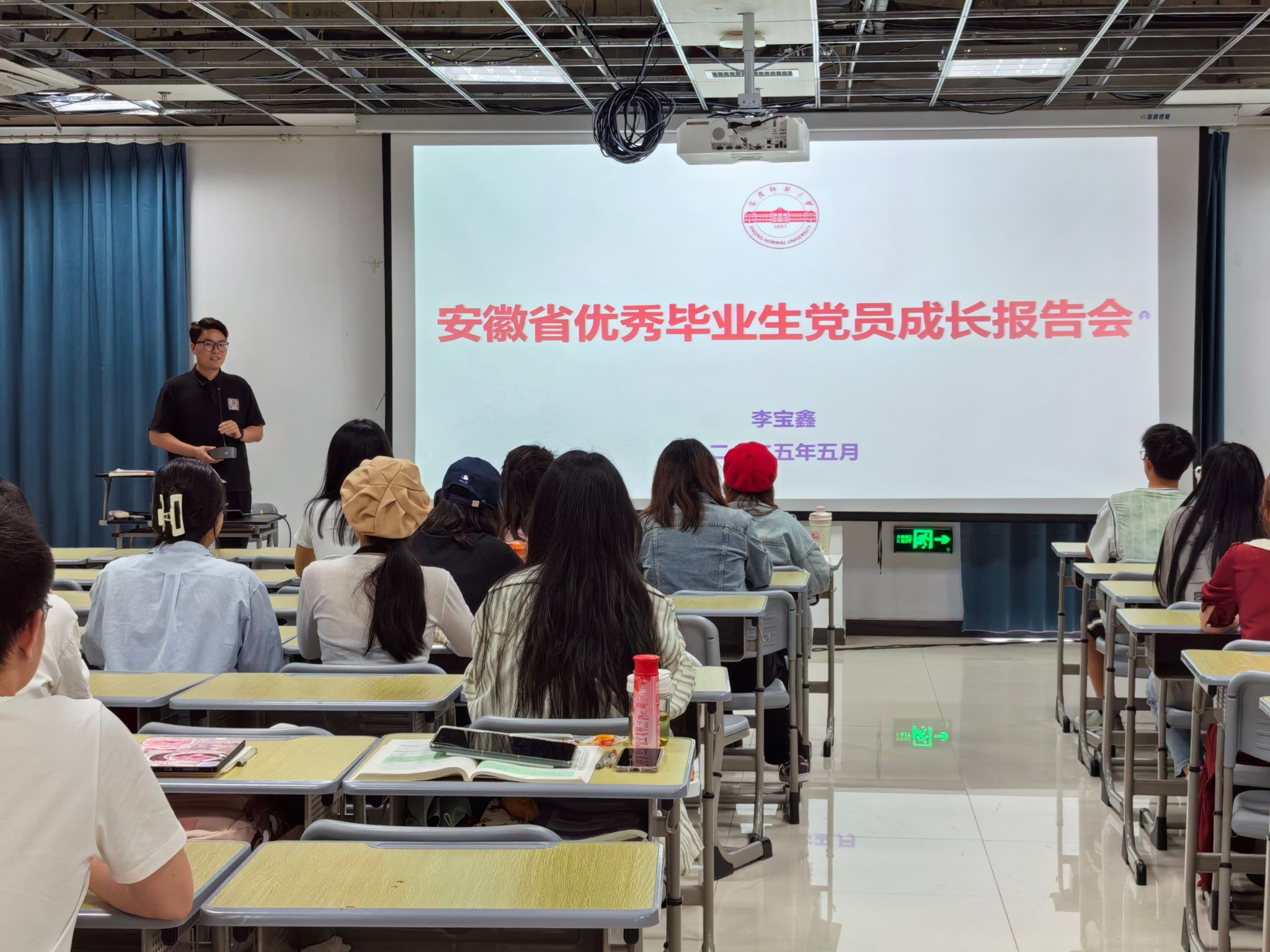 5月28日,365上市公司在Q楼119教室举办了学生党员教育培训班暨优秀毕业生党员成长报告会。此次活动邀请了全国“青马工程”高校班学员、安徽省优秀毕业生、马克思主义理论专业2022级硕士研究生李宝鑫作专题分享,全体学生党员、发展对象及入党积极分子参加学习。