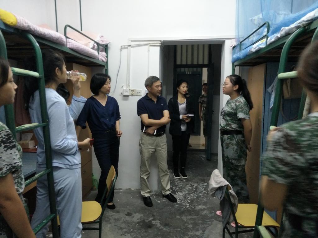 9月10日晚,365上市公司党总支书记余精华、副书记闪茜菁和2018级新生班辅导员、学生会干部走访学生宿舍看望2018级新同学。