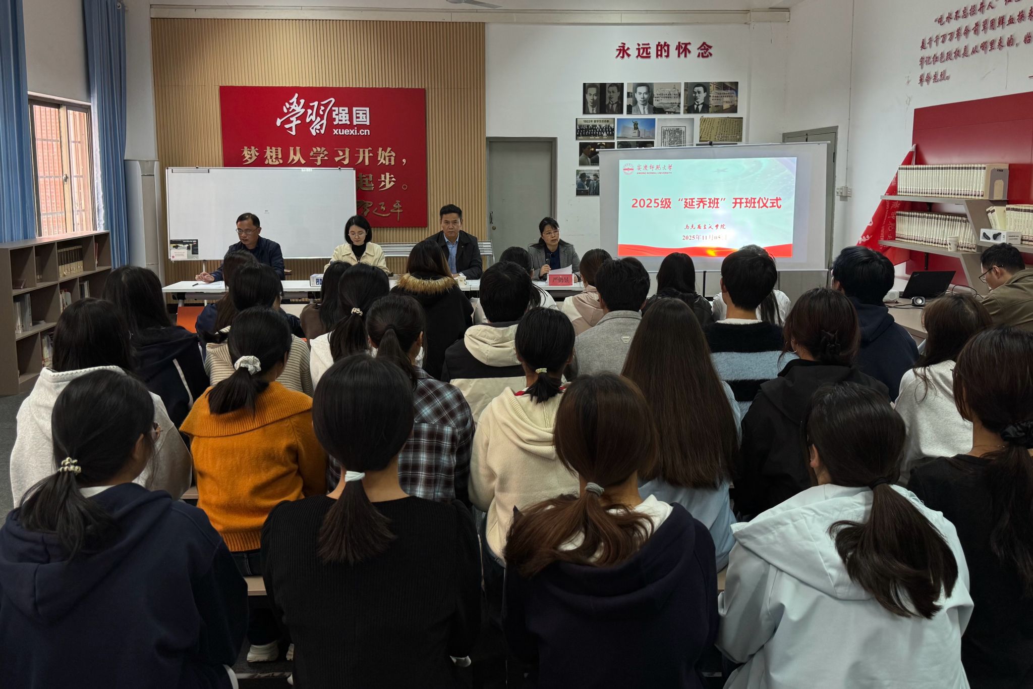 11月5日,365上市公司在图书馆延乔书屋举行2025级“延乔班”开班典礼。教务处处长潘锦云、学院院长严仍昱、副院长余江舟、全国优秀教师杨奇、2025级“延乔班”辅导员及“延乔班”全体学生参与,开班典礼由余江舟主持。