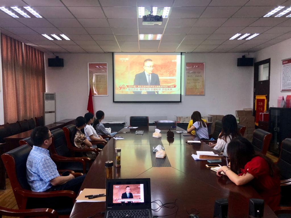 9月3日上午,纪念中国人民抗日战争暨世界反法西斯战争胜利75周年向抗战烈士敬献花篮仪式在中国人民抗日战争纪念馆举行,我院组织师生收看、收听直播或转播实况,并召开座谈会、讨论会畅谈感想。