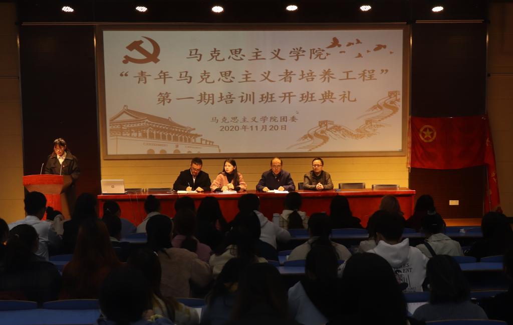 11月20日下午,学院第一期“青年马克思主义者培养工程”培训班(以下简称“青马班”)在文津楼D111报告厅举办了开班仪式。学院党委书记金文斌、团委副书记和辅导员老师以及“青马班”学员、安庆一中老师及学生代表等89人参加了开班仪式。