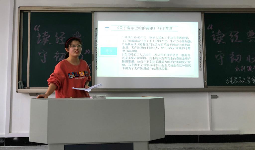 学习理论最有效的办法是读原著、学原文、悟原理,11月18日下午,学院组织2020级全体研究生于文源楼B204教室开展第一届“读经典、守初心”读书活动汇报会,分享《马克思恩格斯选集》阅读心得。檀传杰老师、章林老师、杨贵杰老师担任评委。