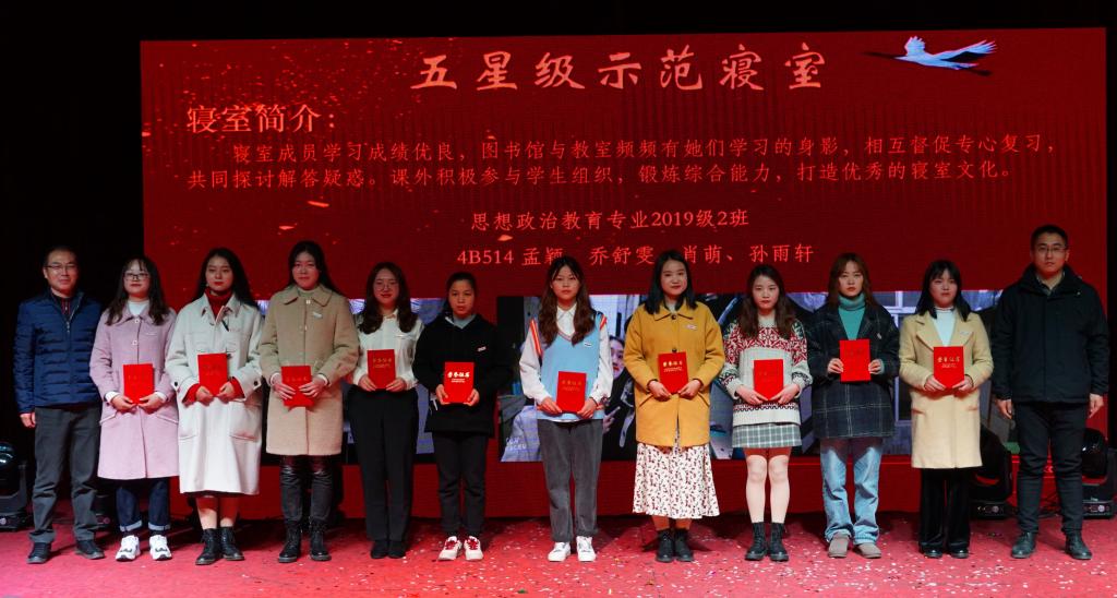 颁奖环节, 10名在道德示范、学风创优、文体素质、创新实践等方面取得荣誉的先进学生受到嘉奖,学院老师为他们颁发奖状并与其合影留念。