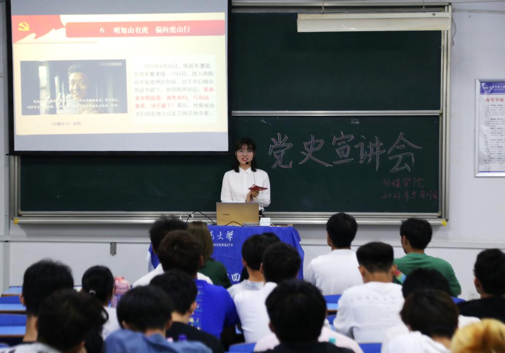 5月27日晚上,英国365上市公司“青年新声·学‘四史’”宣讲团为学校传媒学院100余名学生送来了一场别开生面的宣讲,宣讲陈延年烈士光辉事迹。