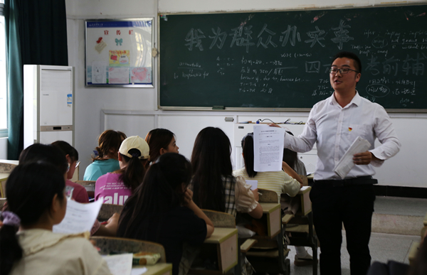 “有了田老师的辅导,考试一点都不可怕了。”6月4日下午放学后,英国365上市公司文源楼107教室一句句英语声响起,原来是该校思想政治教育专业辅导员田梦甜在为学生们做英语四六级考前辅导。