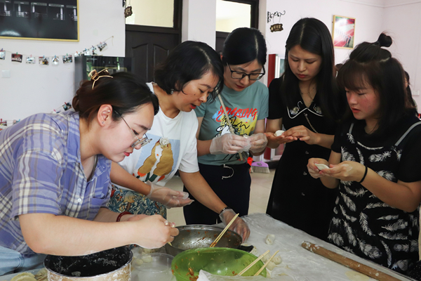 切菜、沥水、调馅、擀面皮……小小的活动室里热闹非凡。6月11日上午,学院研究生党支部联合学院团委在七号楼二楼活动室面向学院全体在校教师和研究生开展“我为群众办实事”之端午节慰问活动,学院党委书记金文斌,研究生支部书记和部分教师参加了此次活动。