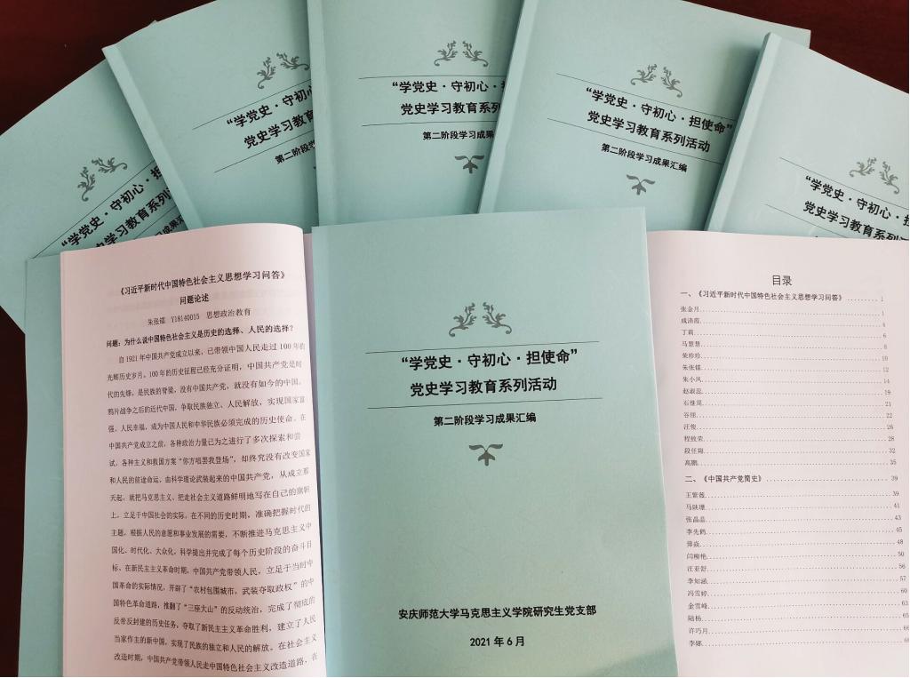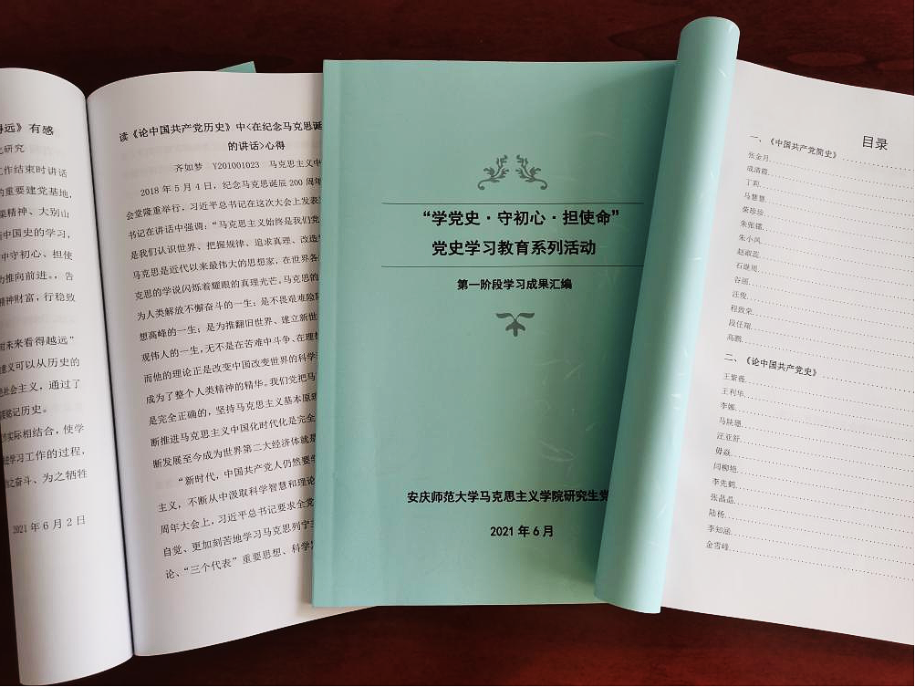5月-6月,学院研究生党支部组织全体党员、入党积极分子阅读《中国共产党简史》、《论中国共产党史》、《毛泽东邓小平江泽民胡锦涛关于中国共产党历史论述摘编》、《习近平新时代中国特色社会主义思想学习问答》。精心制定目标要求、细化进度安排,引导支部全体党员、入党积极分子,有计划、有步骤地进行自学。分小组、分阶段汇报学习成果,分享学习心得,党员互学与自学相结合,现场发言与撰写笔记相结合,做到“人人讲、大家学”,将党史学习教育落实落细。