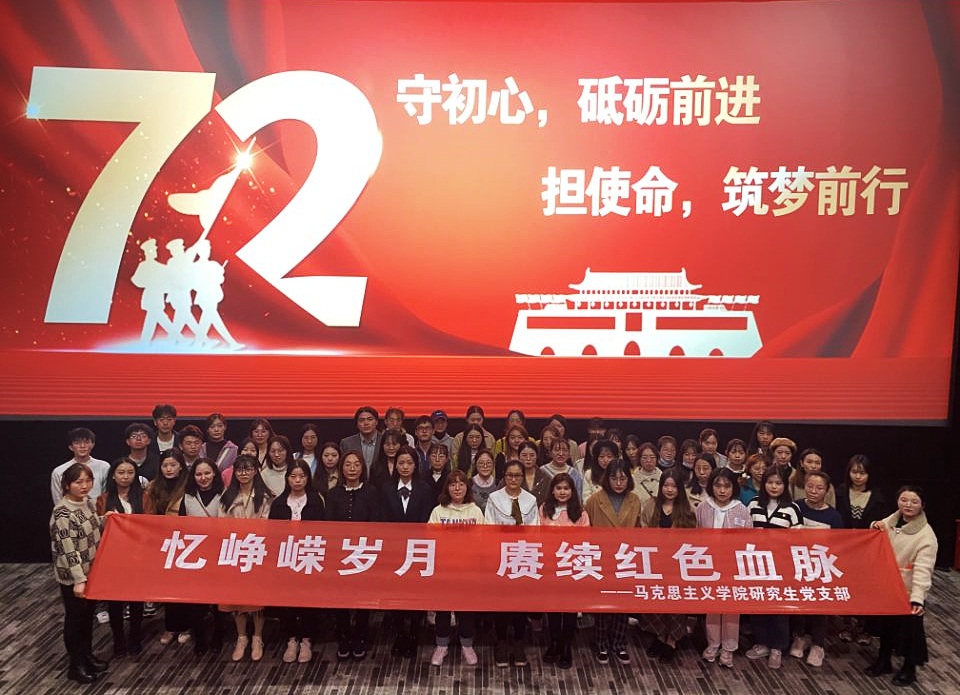 为深入贯彻党的十九届六中全会精神,切实用全会精神统一学生思想和行动,促进学生理论学习与社会实践相结合,11月20日,学院研究生党支部组织中国特色社会主义理论研成员,开展“深入学习党的十九届六中全会精神”主题教育观影活动。此次活动由学院研究生党支部书记带队,研究生党支部党员及入党积极分子60多名同学集体观看影片《长津湖》和《铁道英雄》。
