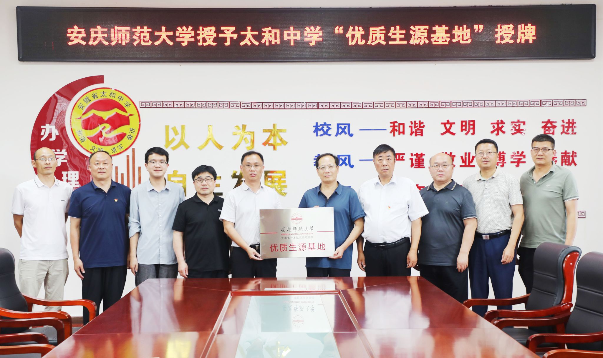 7月3日,学院副院长余江舟带领教务和实验实训中心负责人一行前往太和中学参加“优质生源基地”签约及授牌仪式。太和中学党总支书记王永先、副校长王德民等学校党政领导班子成员参加授牌仪式。