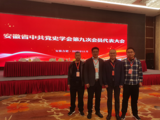 2025年11月8日,安徽省中共党史学会第九次会员代表大会在合肥召开。来自省直有关单位、高校、党校、文博、社科研究部门以及党史系统的学会代表210多人参加会议。学院金文斌、张俊生、郭祥、方伟四位老师参加会议。