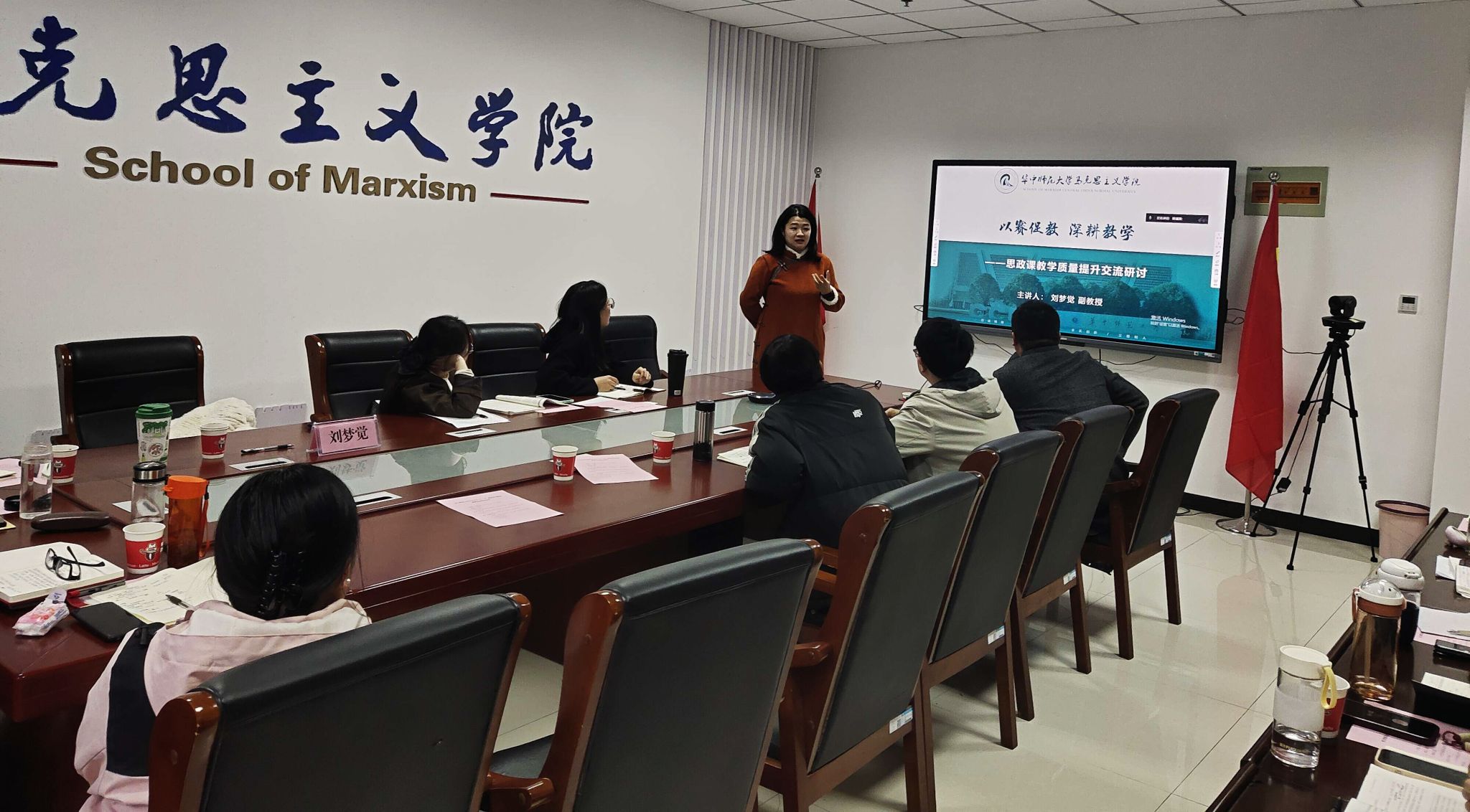 刘梦觉结合自身参加青教赛的经历,强调教学设计在参加比赛和课堂教学中的重要性,认为“教学不设计,心中无底气”,并以“思想道德与法治”课为例,展示了如何做好教学设计,鼓励青年教师在吃透教材和备好学生的基础上,精心设计教学,构筑高效课堂。
