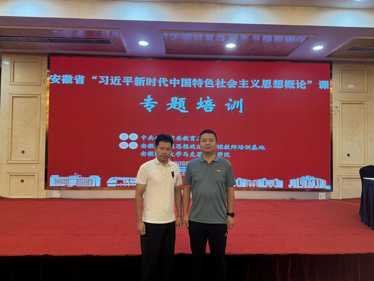 8月20日-24日,安徽省2025年“习近平新时代中国特色社会主义思想概论”课专题培训班在安徽师范大学举办。“习近平新时代中国特色社会主义思想概论”教研室陈道发和刘小芳两位青年教师参加学习。