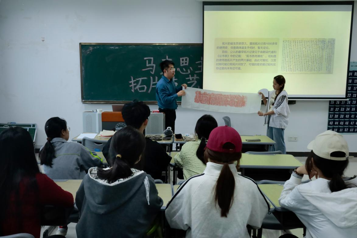 “此次书法拓片技艺体验课程是对学校美育课程建设目标的积极响应,让学生能在了解书法拓片技艺中,感受到独特的乐趣。”活动负责人、思想政治教育专业2024(3)班的沈小琳介绍,本次的活动相较以往单纯“听讲解、看展示”为主的传播形式,加入让学生亲自动手实操、亲身体悟的实践环节,让学生不再是文化大门外的旁观者,而是能更加直观感受书法拓片技艺的奇妙魅力。
