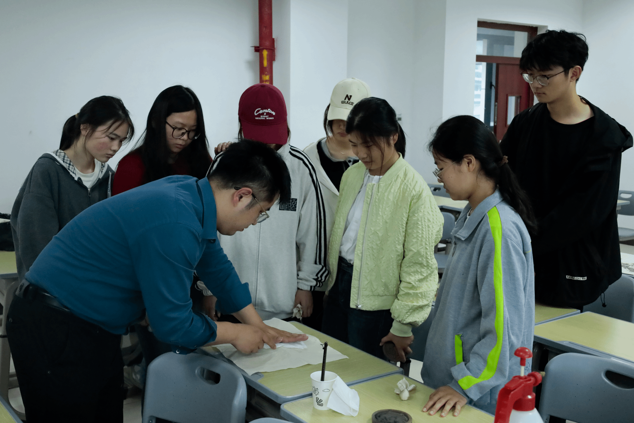 “拓片技艺传承至今,纸在拓片制作中扮演者不可或缺的角色,不同的纸张它所带来的效果也有差异。”教师朱氤鹏化身拓片文化的引路人,为学生们讲解书法拓片起源、发展以及其主要的内容与形式。谈及书法拓片传承的核心要点时,朱氤鹏表示,他希望通过此次课程,让学生能够深入感受拓片技艺的精妙之处,在心中种下探索拓片技艺的种子。