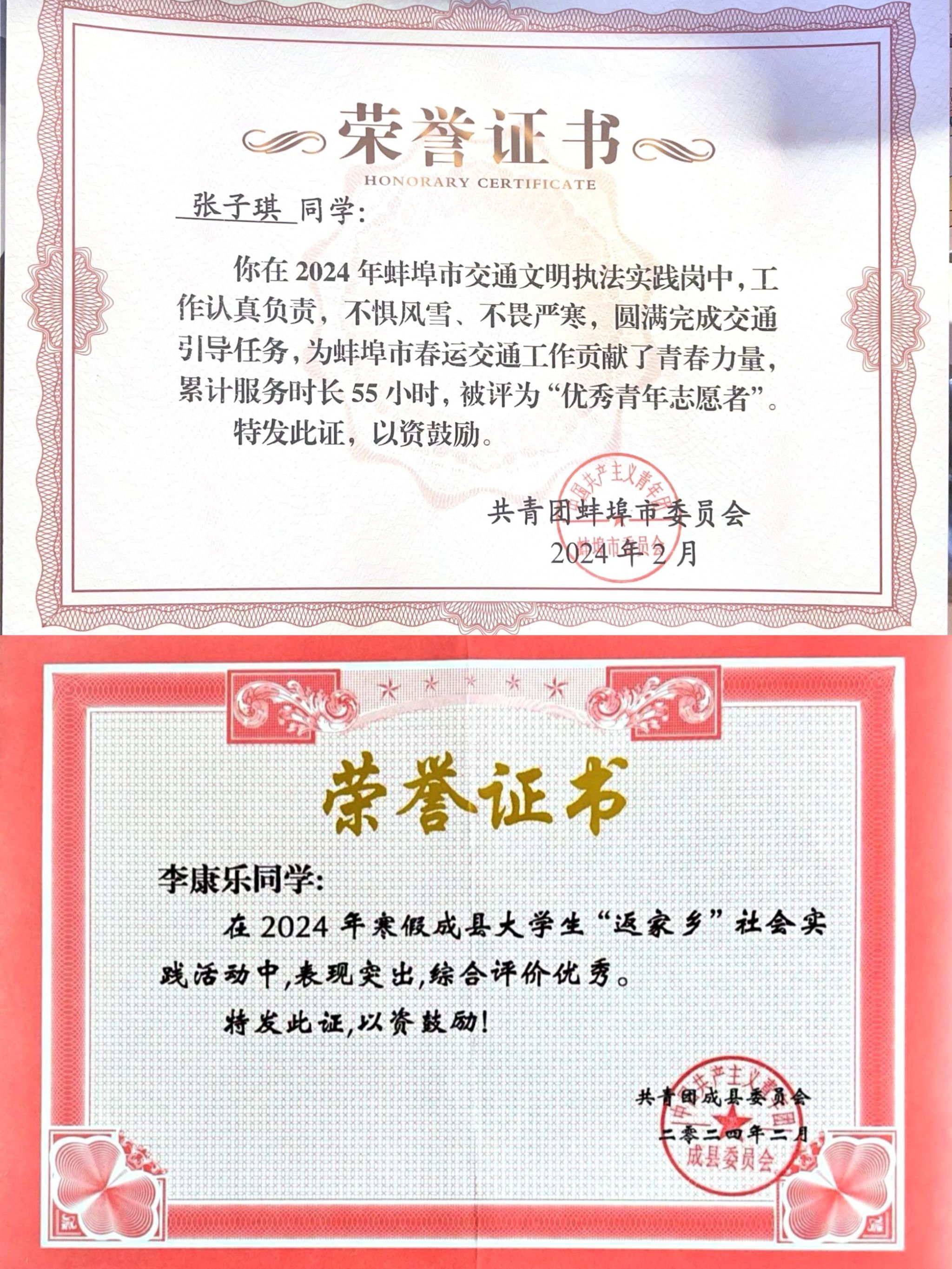 寒假期间,2023级思想政治教育专业延乔班共18人次参加,占班级人数的64.28%。思想政治教育专业2023级延乔班李玉婷参加了返乡潮高铁站服务志愿活动与社区服务,她在谈及本次活动中说到,“这次实践活动为我们青年创造了一个更深入理解社会、服务社会的平台,作为一名思想政治教育专业的学生,我会将本次的收获与所学专业知识融合,在未来为更多人提供更优质的帮助,为家乡和社会发展贡献力量。”思想政治教育专业2023级延乔班张子琪主动报名参加了由共青团蚌埠市委员会、蚌埠市交通运输局联合举办的蚌埠南站交通执法实践活动。通过寒假的“返家乡”社会实践活动,不仅增长了知识、提升了能力,更重要的是增强了对家乡的归属感和对社会的责任感,也丰富了个人志愿服务经历。