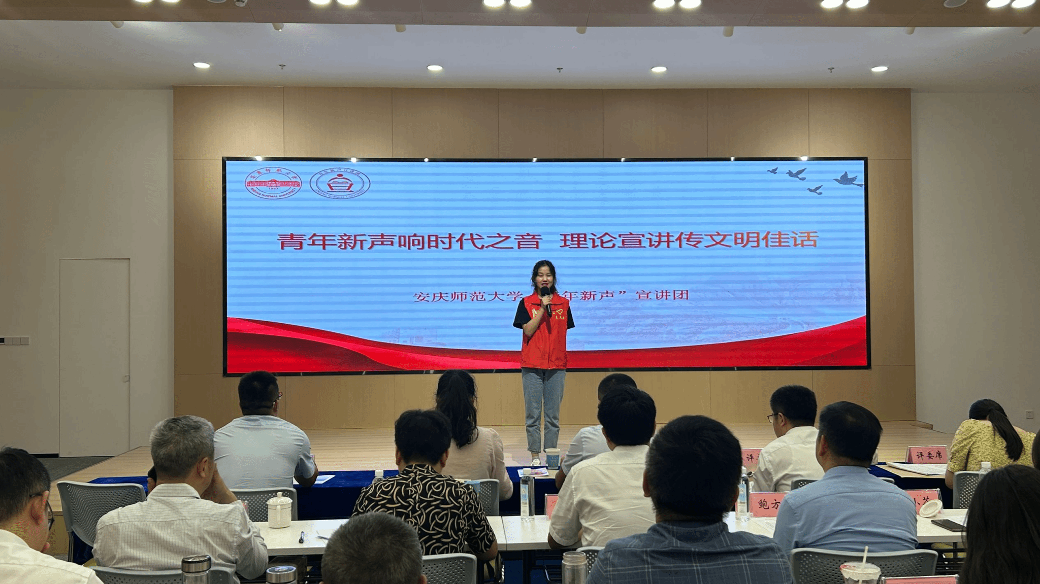 9月14日,2023年安庆市新时代文明实践志愿服务项目大赛暨展示交流活动在潜山市新时代文明实践中心举行,我校“青年新声”宣讲团荣获2023年安庆市新时代文明实践志愿服务项目大赛三等奖。