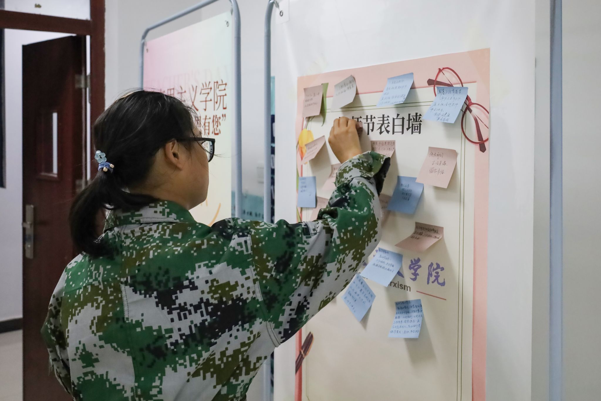 筹划活动、购买材料、选择场地,据活动负责人、思想政治教育专业2022级(1)班的林晓蕾介绍,为了迎接教师节的到来,他们于一周前便着手筹备此次活动。待活动结束后,工作人员会将学生们亲手制作的手工花与明信片一并送给学院教师。“与往届不同的是,我们在节日寄语上增加了DIY花束环节,使活动的形式更加新颖化。”林晓蕾说。