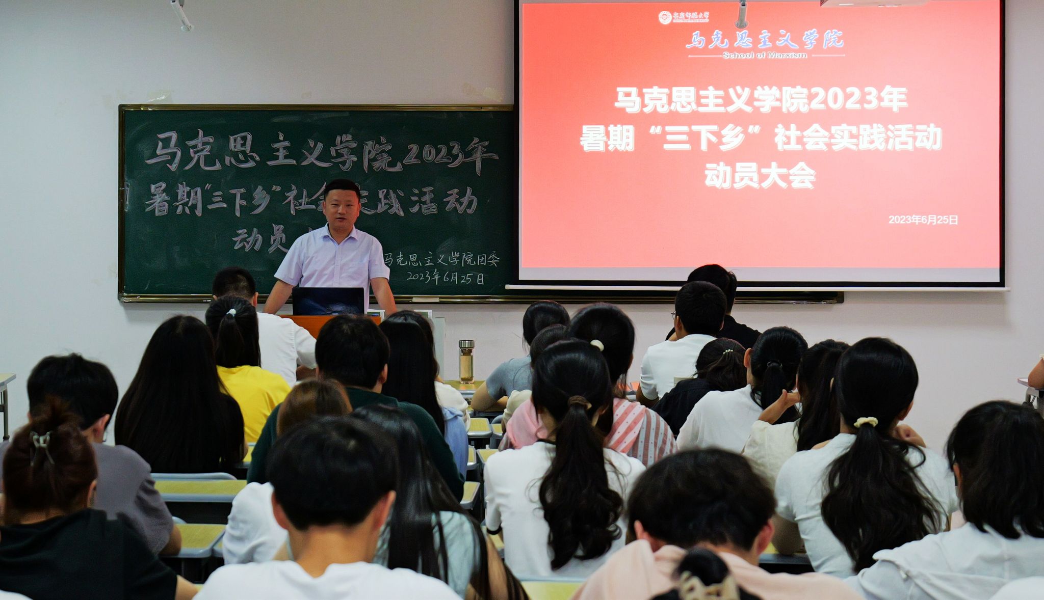 6月25日,学院在Q212室举行2023年暑期“三下乡”社会实践活动动员大会。学院党委副书记邹斌、团委负责人、指导教师代表参加会议,2023年暑期“三下乡”社会实践活动全体成员参加动员大会。