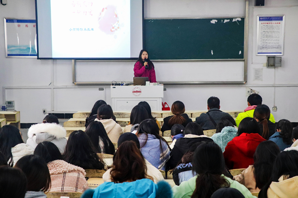 12月8日,学院2018级辅导员贺佳欢主持主题班会。会上,她为每一位考研学子发放信封,里面装有信纸、气球和星星。“我特意为每人准备了一张空的信纸,大家可以写下自己此时此刻最想说的话,我会为大家保存,一年后交还。”贺佳欢介绍,学生们考研压力大,可以通过吹气球来舒缓压力。
